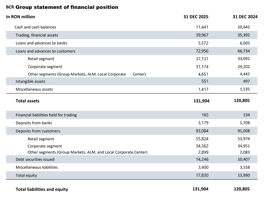 Year-on-year growth of BCR’s business as of 31 December 2025: a 9.2% increase in net assets, a 20%
