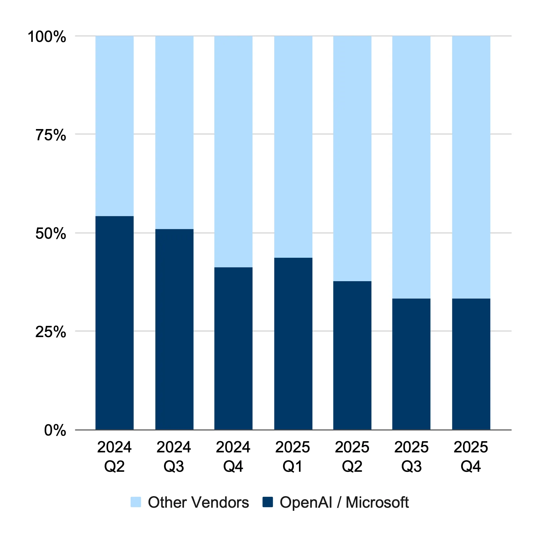 Of bank use cases that included vendor information, the share featuring OpenAI dropped from more than half to one-third in 18 months.