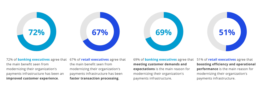 The survey reveals that 54 percent of retailers believe that payment modernization is crucial to the future of their business, including delivering major efficiency and operational gains. However, just over half (53 percent) of retailers believe that their banks understand their payment modernization goals, with 45 percent saying their banks are proactively delivering payment solutions tailored to their needs.
